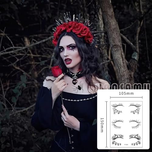 - DIY Makeup: The face eyeshadow sticker and Spider Web Tattoo accent your interesting makeup, they look vivid and natural, supplemented with some makeup to make the final look very realistic and gruesome, a great trick to surprise and scare your friends