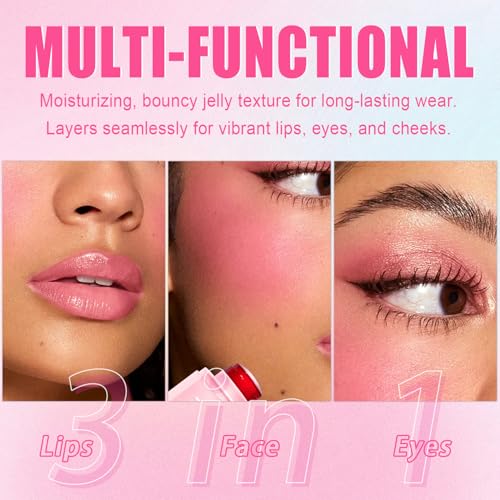 - 【Versatile 3-in-1 Watercolor Beauty】Simplify your routine with this multi-use makeup marvel! This jelly blush stick works beautifully as a cheek tint, lip tint, and even a subtle eye color. Achieve a cohesive, sheer watercolor blush effect across your features with just one product for a perfectly harmonious and glowing makeup look.