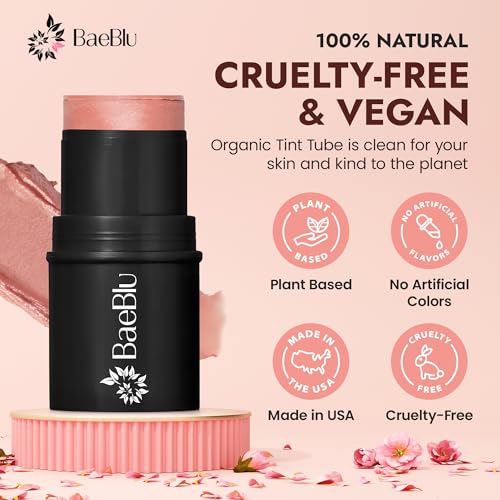 BaeBlu - Organic Blush Tube, Rose - 100% Natural Vegan Cream Blush Sticks, Multi-Use Bronzer, & Highlighter for Lips, Chee...