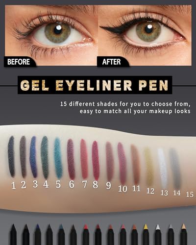 - Different Eye Makeup Effects - The eyeliner pencils include both shimmer and matte series, 15 different colors can be freely matched with all occasions of makeup, whether it is daily work or festival stage, you can make full use of it. Especially for Halloween and Christmas, you can boldly match all the colors to attract everyone's attention. White and nude eyeliners are also perfect for outlining the inner eye line.