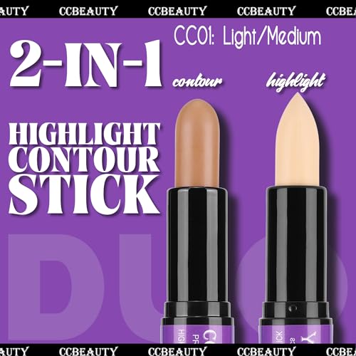 CCbeauty 2-IN-1 Matte Contour Stick,Cream Dual Highlight Concealer Stick, Highlighting & Contouring Kit, Bronzer Highlight...