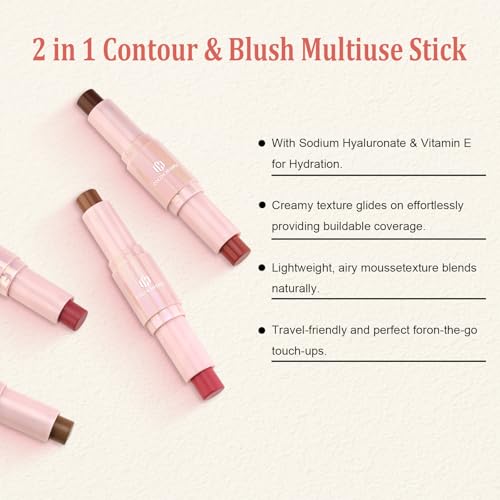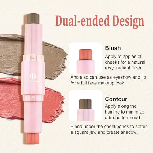 - Multi-Purpose Double-Ended Stick: One Stick, Endless Possibilities. This innovative double-ended stick combines a cream blush on one tip and a cream contour on the other. Its ultra-blendable, buttery formula seamlessly replaces your contour, bronzer, blush, and even works as an eyeshadow and lip color. The ultimate all-in-one solution for a streamlined, on-the-go beauty routine.