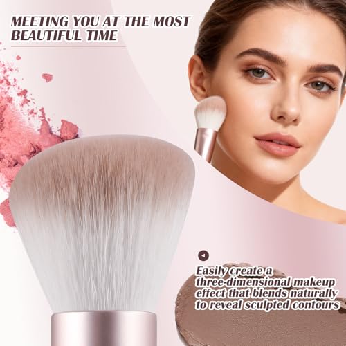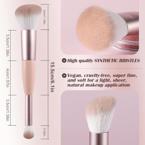 Dual-Ended Blush Brush for Cheeks, Premium Soft Make Up Brushes for Seamless Blending, Versatile Kabuki Brush for Powder B...