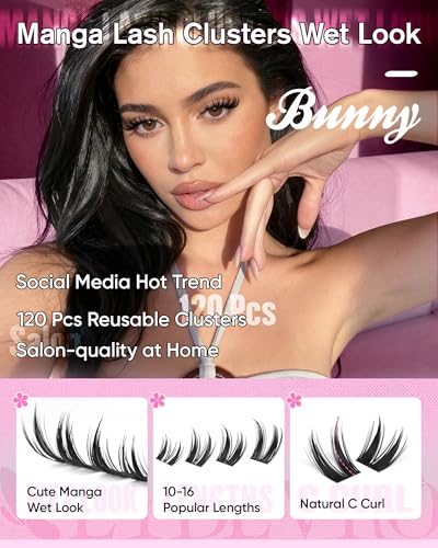 - Cute Bunny Manga Lash Clusters: Meet your new secret weapon for adorable, eye-opening looks! Inspired by the cute shape of bunny ears, our manga lash clusters are uniquely designed to create a perfect, wide-eyed anime effect; This innovative shape lifts your outer corners, mimicking a playful, youthful gaze; Achieve that irresistible, doll-like fringe in seconds; Get ready to bat those big, beautiful eyes and unleash your inner kawaii character!