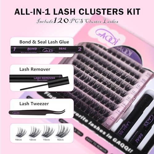 GAQQI Lash Clusters Kit, DIY Lash Extension Kit 120PCS Cluster Lashes C Curl, Wispy Eyelash Clusters 10-16MM with Lash Bon...