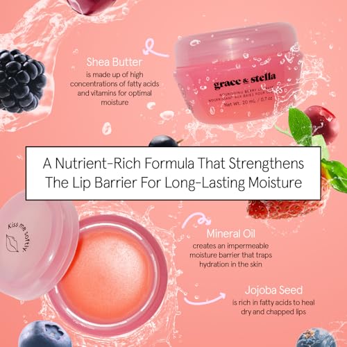 grace & stella Award Winning Lip Butter - Lip Balm Hydrating - Nourishing Lip Mask (3-pack) Airplane Travel Essentials, Be...