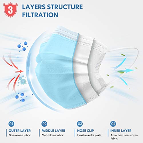 - 3Ply Face Mask: Outer blue layer with non-woven fabric can effectively filter particulate pollutants in the air. Middle melt-blown cloth layer can effectively keep away from impurities. Inner absorbent white layer which is gentle and more breathable