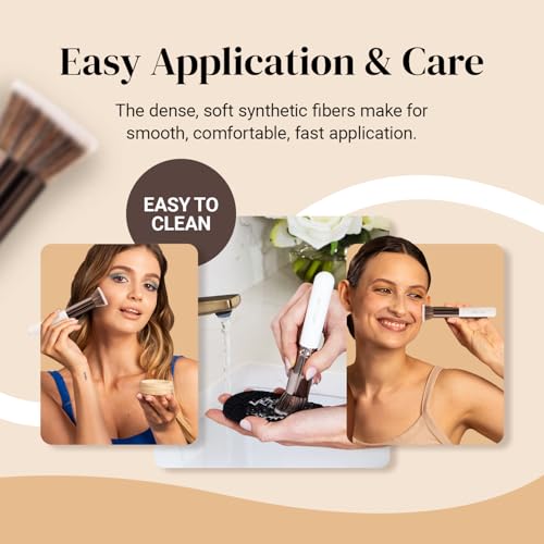 - Ideal foundation brush for liquid makeup, creams, as well as powders; The synthetic bristles pick up just the right amount of product and distribute it evenly onto the skin, resulting in a precise, smooth, streak-free and patch-free finish
