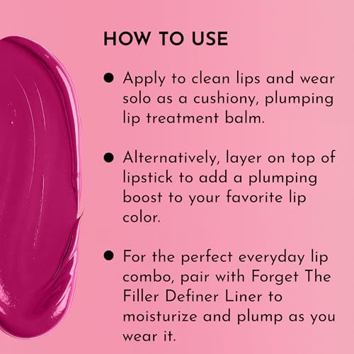 - How to Use: Apply to clean lips and wear solo as a cushiony, plumping lip treatment balm. Alternatively, layer on top of lipstick to add a plumping boost to your favorite lip color. For the perfect everyday lip combo, pair with Forget The Filler Definer Liner to moisturize and plump as you wear it.