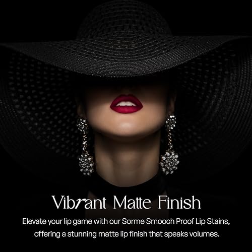 - Vibrant Matte Finish: Elevate your lip game with our Sorme Smooch Proof Lip Stains, offering a stunning matte lip finish that speaks volumes. Crafted for flawless all-day wear, our lip stains ensure your color stays bold and beautiful all day long. Plus, our stains are water-based, ensuring your look stays flawless even in challenging conditions.