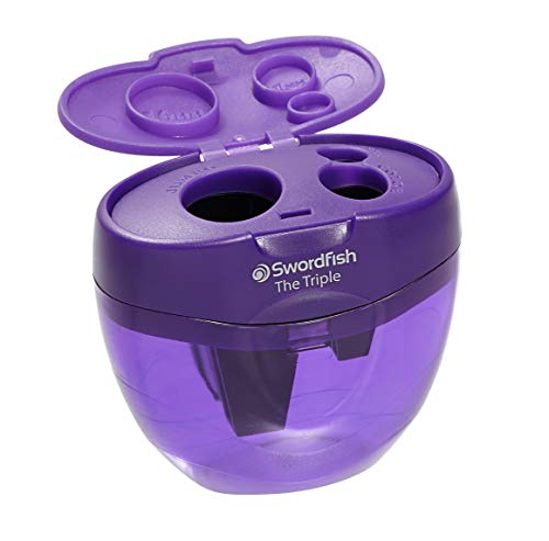 Swordfish ‘The Triple’ Three Hole Pencil Sharpener with Mess-Free Canister [Pack of 1] 8-16 mm [40228s], Purple