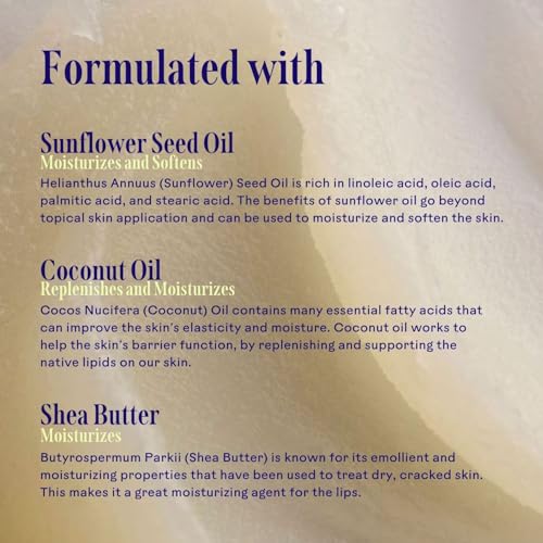 - WHAT IT DOES: Sugar gently exfoliates dry, flaky skin while Sunflower Seed Oil hydrates & softens and Shea Butter seals in moisture for softer, smoother lips